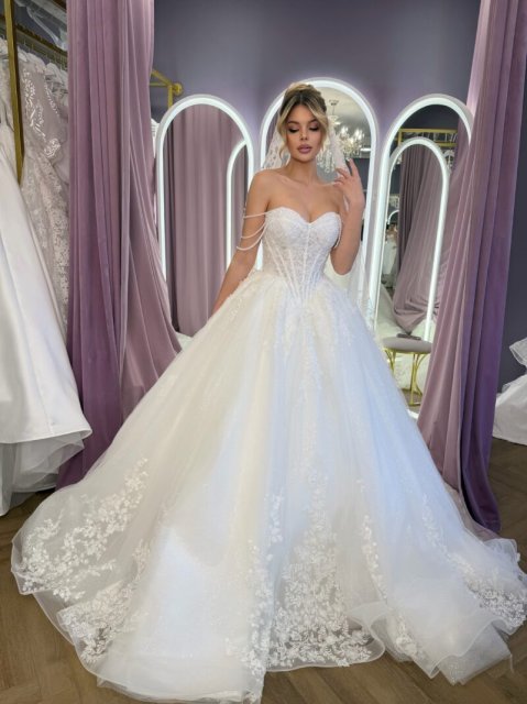 - А-силуэт: классический вариант для большинства невест. Он подходит для разных типов фигур и выглядит элегантно.