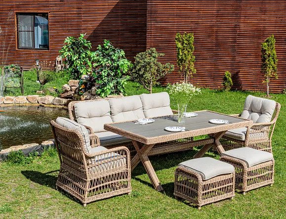 При выборе важно учитывать несколько факторов. Во-первых, размер участка: громоздкая мебель на маленькой территории будет выглядеть неуместно. Во-вторых, стиль — желательно, чтобы мебель гармонировала с домом и ландшафтом.
